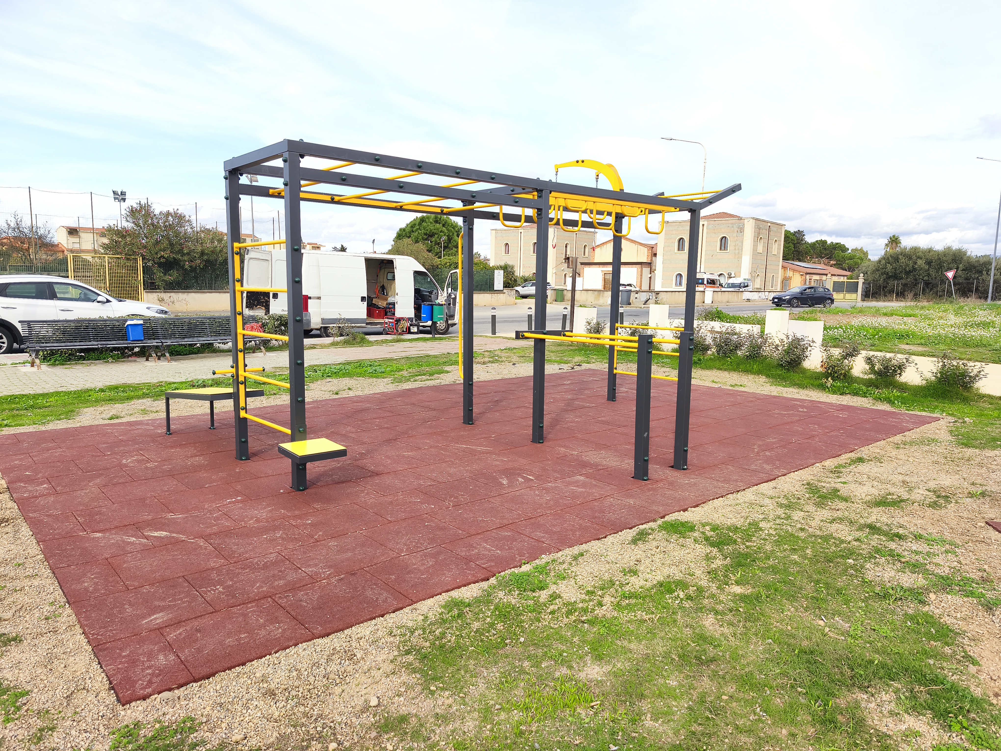 A Sestu, im una zona nuova, nasce un nuovo parco, con giochi per bambini e un grande Calisthenics.